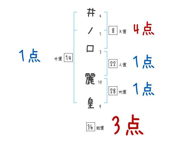 人運![]() | 井ノ口麗皇さんの人運は22画の1つ星!努力することが苦手ないっぽう手先が器用。芸術性にも優れる。 性格や才能などを表す2番目に重要な運勢です。人間関係や協調性、社会的な成功に影響します。主に20歳から50歳ぐらいまでの中年期の運勢を表します。 |