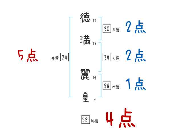 徳満麗皇さんの画数の鑑定結果
