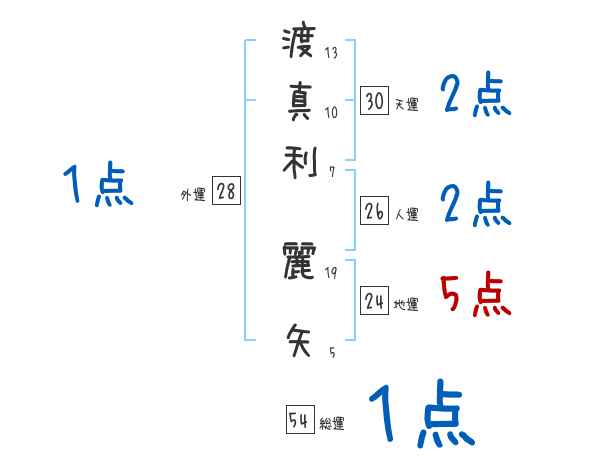 渡真利麗矢さんの画数の鑑定結果