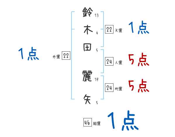 鈴木田麗矢さんの画数の鑑定結果
