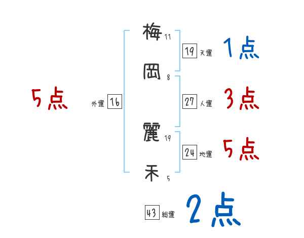 梅岡麗禾さんの画数の鑑定結果