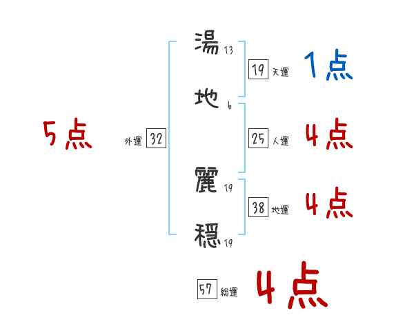 湯地麗穏さんの画数の鑑定結果
