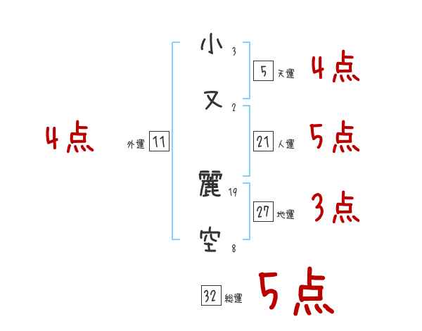 小又麗空さんの画数の鑑定結果