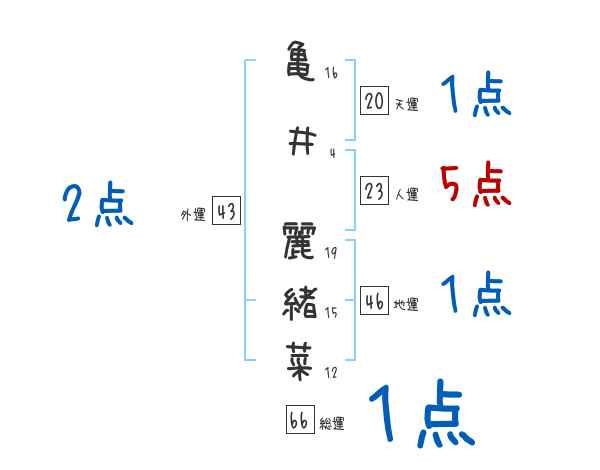 亀井麗緒菜さんの画数の鑑定結果