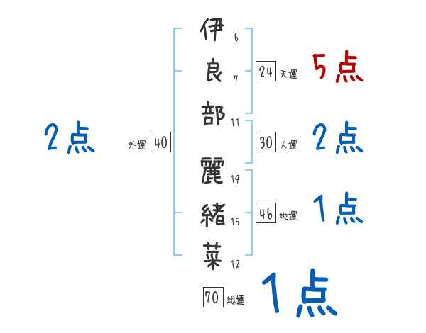 伊良部麗緒菜さんの画数の鑑定結果
