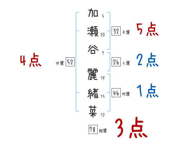 加瀬谷麗緒菜さんの画数の鑑定結果