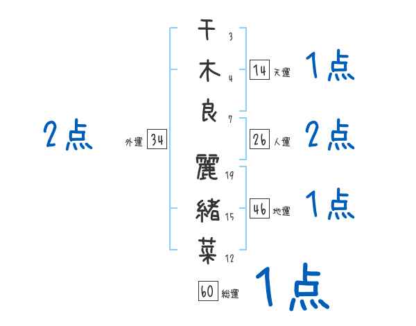 千木良麗緒菜さんの画数の鑑定結果