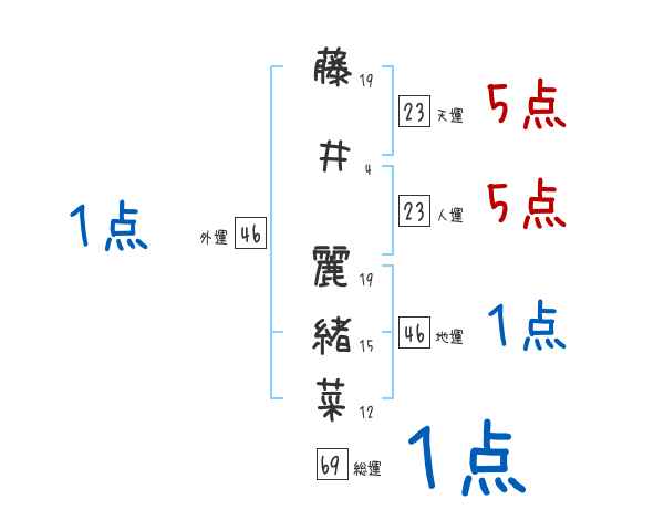 藤井麗緒菜さんの画数の鑑定結果