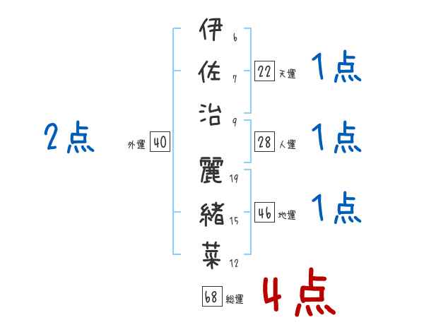 総運![]() | 伊佐治麗緒菜さんの総運は68画の4つ星!潜在能力が高く集中力が高い。勤勉に励み発展する。 あなたの人生を表す1番重要な運勢です。生涯を通じて影響する総合運となり、主に50歳以降の晩年期に影響を及ぼします。 |