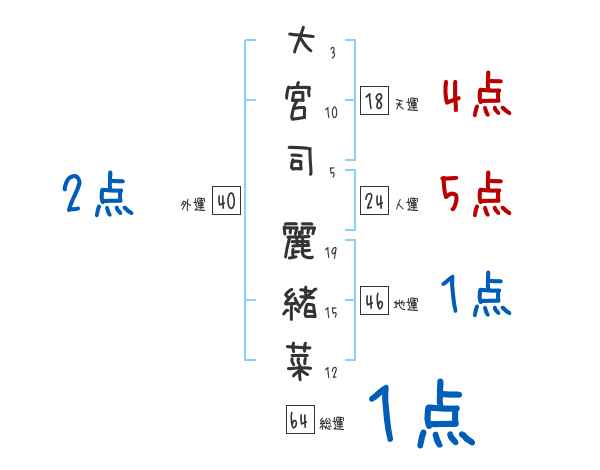 大宮司麗緒菜さんの画数の鑑定結果