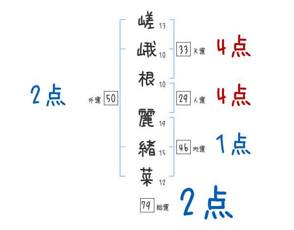 嵯峨根麗緒菜さんの画数の鑑定結果