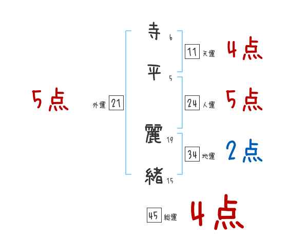 寺平麗緒さんの画数の鑑定結果