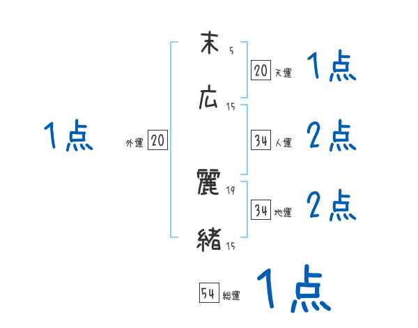 末広麗緒さんの画数の鑑定結果