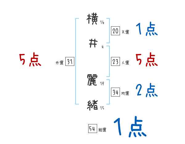 横井麗緒さんの画数の鑑定結果