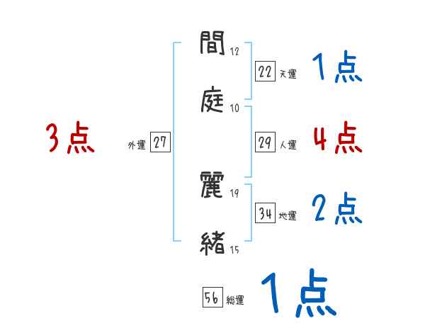 間庭麗緒さんの画数の鑑定結果