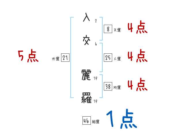 入交麗羅さんの画数の鑑定結果
