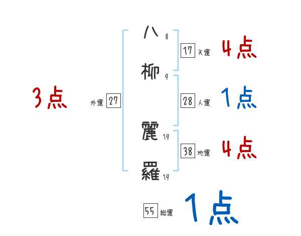 八柳麗羅さんの画数の鑑定結果