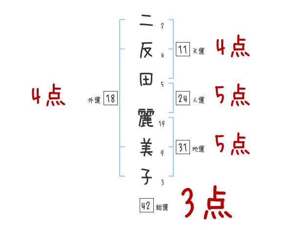 二反田麗美子さんの画数の鑑定結果