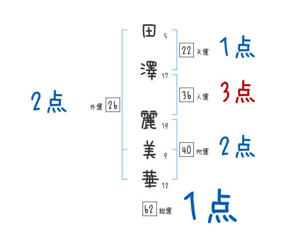 田澤麗美華さんの画数の鑑定結果