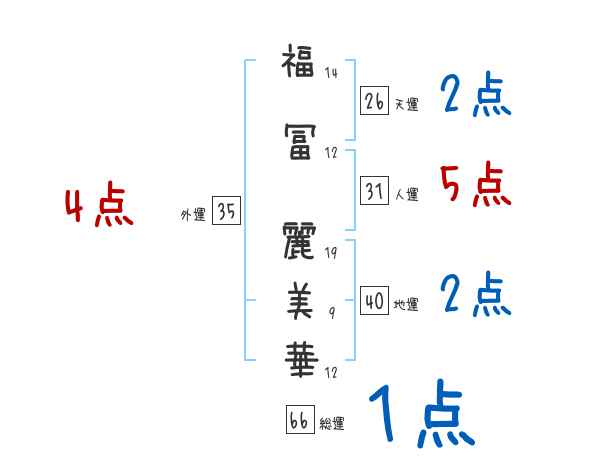 福冨麗美華さんの画数の鑑定結果