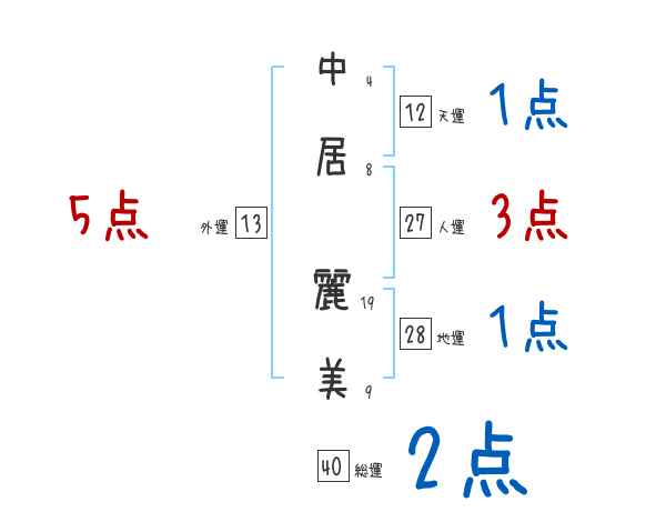 中居麗美さんの画数の鑑定結果