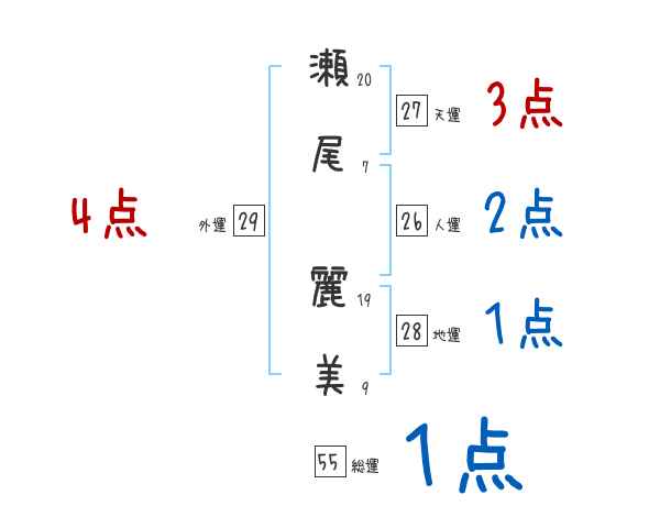 瀬尾麗美さんの画数の鑑定結果