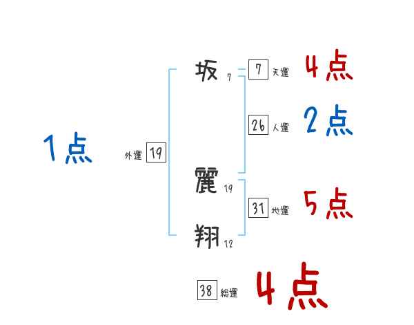 坂麗翔さんの画数の鑑定結果