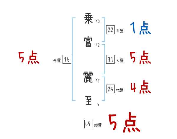 乗富麗至さんの画数の鑑定結果