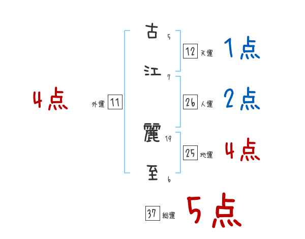 古江麗至さんの画数の鑑定結果