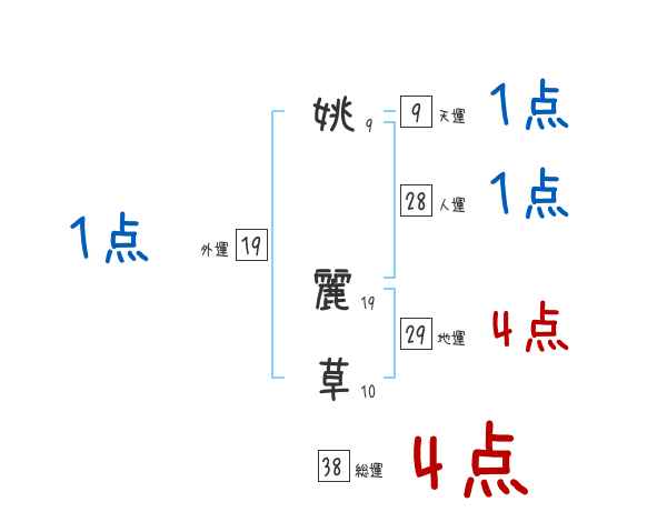 天運![]() | 姚麗草さんの天運は9画の1つ星!消極的で才能を発揮することが苦手なことも。周りの意見に耳を傾けましょう。 家系が持つ宿命的な運勢を表します。祖先から受け継いだ苗字ですので自分の力が及びません。家柄を象徴します。 |