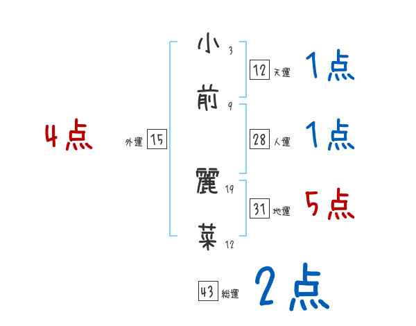 小前麗菜さんの画数の鑑定結果