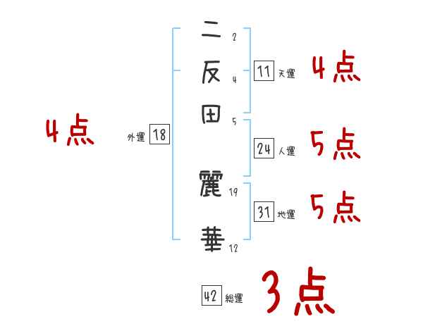二反田麗華さんの画数の鑑定結果
