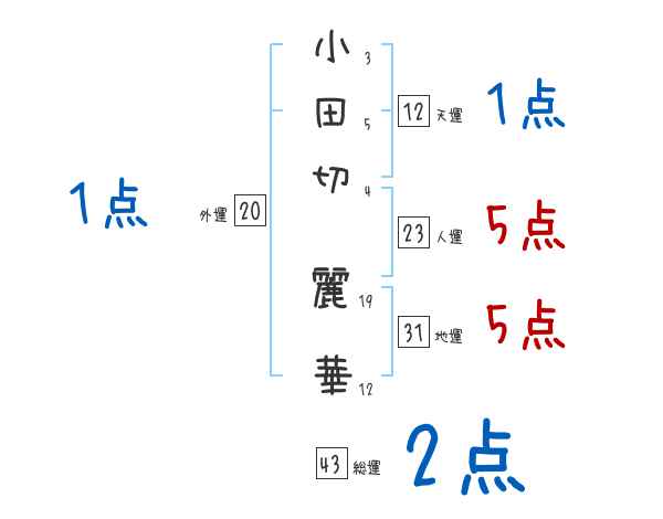 小田切麗華さんの画数の鑑定結果
