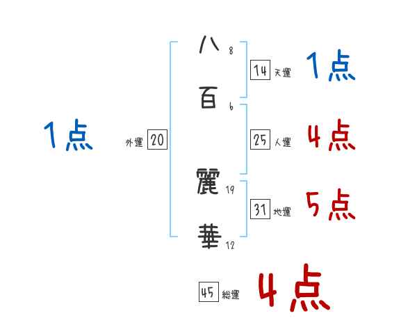 八百麗華さんの画数の鑑定結果