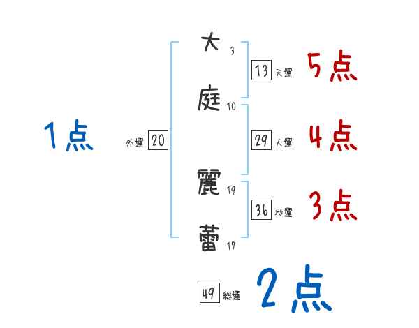 大庭麗蕾さんの画数の鑑定結果