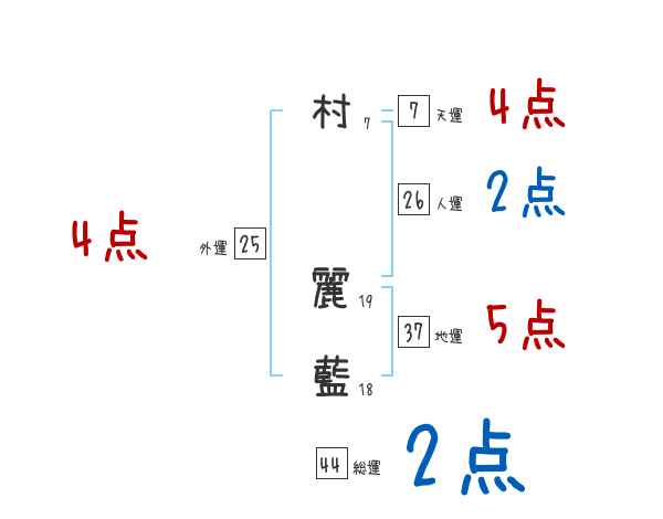 村麗藍さんの画数の鑑定結果
