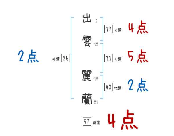 出雲麗蘭さんの画数の鑑定結果