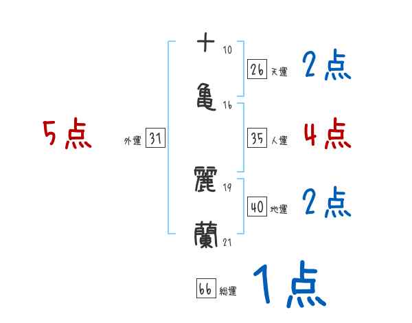 十亀麗蘭さんの画数の鑑定結果