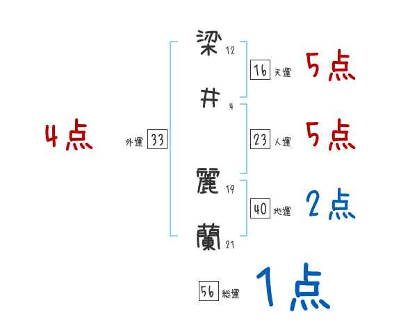 梁井麗蘭さんの画数の鑑定結果