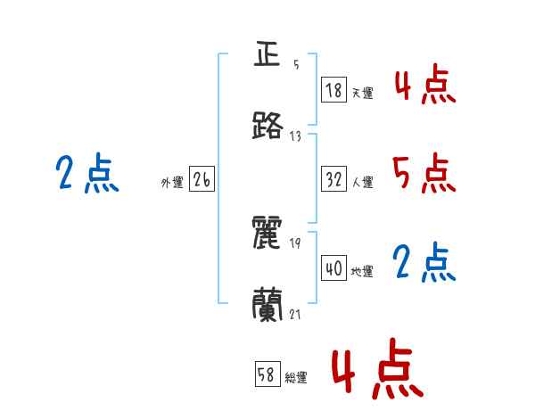 正路麗蘭さんの画数の鑑定結果