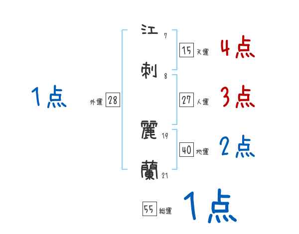 江刺麗蘭さんの画数の鑑定結果