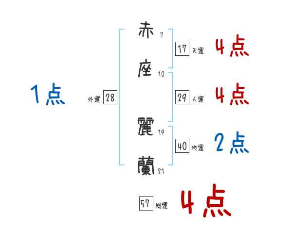 赤座麗蘭さんの画数の鑑定結果
