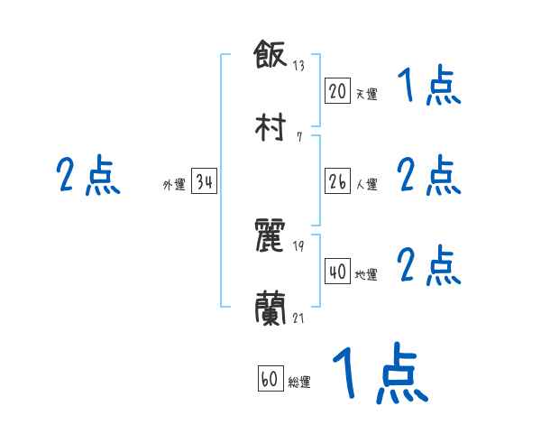 飯村麗蘭さんの画数の鑑定結果