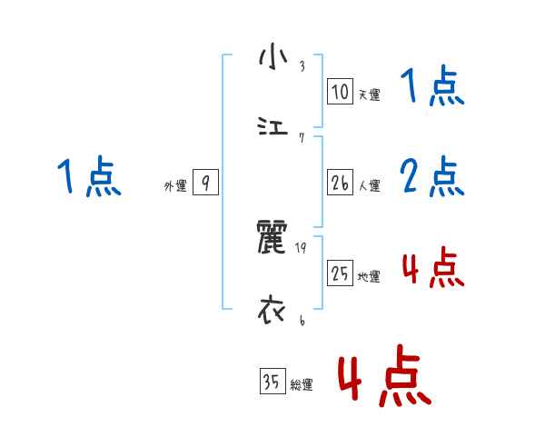 小江麗衣さんの画数の鑑定結果