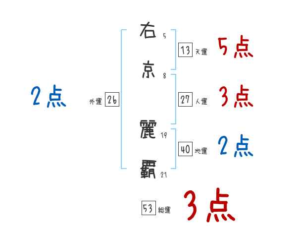 右京麗覇さんの画数の鑑定結果