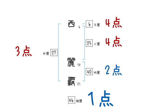 西麗覇さんの総運は46画の1つ星
