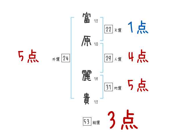 富原麗貴さんの画数の鑑定結果