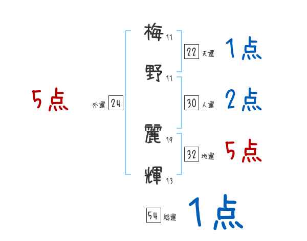 梅野麗輝さんの画数の鑑定結果