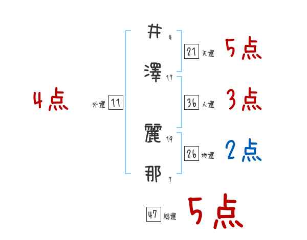 井澤麗那さんの画数の鑑定結果