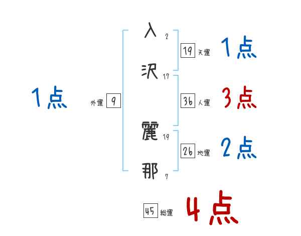 天運![]() | 入沢麗那さんの天運は19画の1つ星!優れた才能を持ちますが、協調性が足りないことも。周りの人と協力する事を意識しましょう。 家系が持つ宿命的な運勢を表します。祖先から受け継いだ苗字ですので自分の力が及びません。家柄を象徴します。 |